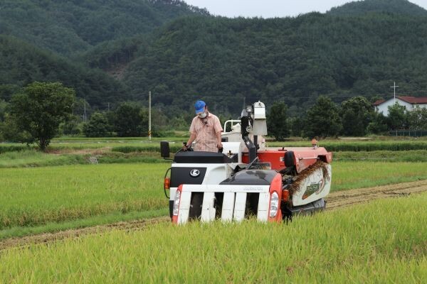 1일 군에 따르면 영동지역의 올해 첫 벼베기 농가는 상촌면 하도대리 남기생 농가로 조생종 운광벼 0.5ha의 농지에 지난 8월 31일 지역 처음으로 진행됐다.