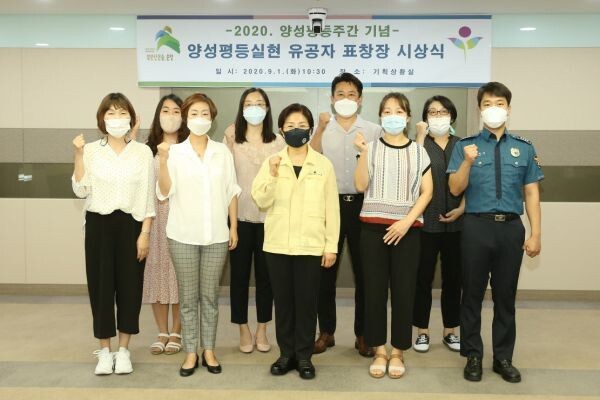 올해는 코로나19 감염병 예방을 위한 사회적 거리두기 시행으로 양성평등주간이 9월1일부터 7일까지로 조정됨에 따라 다수 인원의 행사 참여가 어려운 점을 고려해 기념행사 및 별도의 부대행사 없이 양성평등 실현에 기여한 유공자에 대한 표창장만 수여했다.