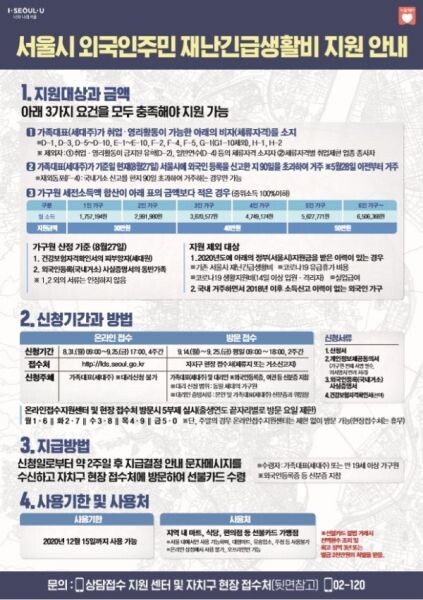 지원대상은 서울시에 외국인 등록 거소신고 후 90일이 경과했으며 국내에서 합법적으로 취업·영리활동을 할 수 있는 외국인 주민이다.