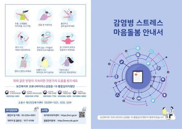 코로나19 확진자와 자가격리자는 입원 치료 및 격리과정 중에 불안, 불면과 낙인, 우울감, 무기력 등의 심리적인 증상이 나타날 수 있다.