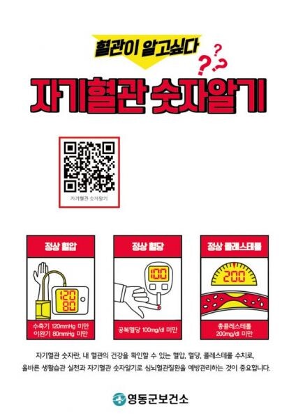 [무한뉴스] 충북 영동군은 심뇌혈관질환 예방관리주간을 맞이해 9월 한달동안‘자기혈관 숫자 알기’SNS 캠페인을 추진한다고 밝혔다.