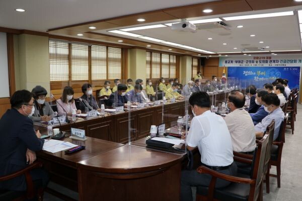 [무한뉴스] 부여군은 지난 1일 부여군청 서동브리핑실에서 박정현 군수와 부여군기독교연합회 회원들을 비롯한 도의원 및 군의원 등 30명이 참석한 가운데 긴급 간담회를 갖고 교계의 입장과 의견을 경청하며 방역을 위한 적극적인 협조를 구했다.