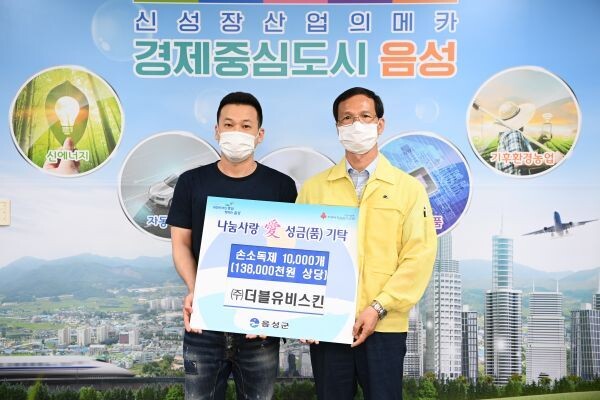 [무한뉴스] 서울 강남구 소재 ㈜더블유비스킨에서 2일 음성군청을 방문해 코로나19 예방을 위해 사용해달라며 손 소독제 1만개를 기부했다.