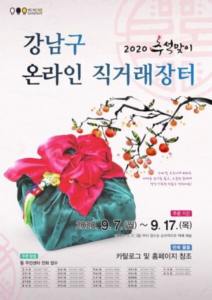 한편 구는 매년 구청 주차장에서 추석맞이 직거래장터를 열어 무료 시식회와 사은품 증정 행사를 진행했으나 올해는 코로나19 지역감염 우려와 비대면 소비 트렌드를 반영해 온라인으로만 진행하기로 했다.