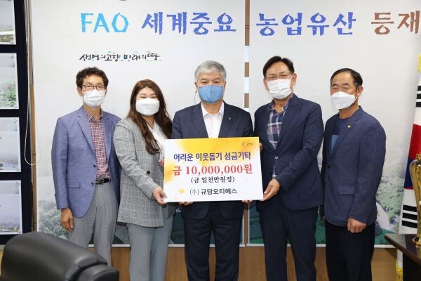 [무한뉴스] ㈜규담오티에스는 지난 4일 금산의 어려운 이웃을 돕기 위한 성금으로 1000만원을 기탁했다.