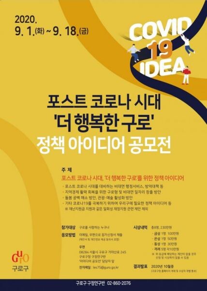 공모 주제는 ‘포스트 코로나 시대, 더 행복한 구로’를 위한 정책이다.
