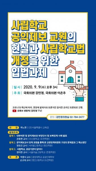 이어 “이사장들의 부적절한 학교 운영에 문제의식을 가진 선생님들은 재단 측으로부터 부당한 인사 조치를 당하고 지금도 학교 개혁과 권리 회복을 위해 투쟁하고 있다”며 “이번 토론회를 통해 독단적이고 불투명하게 운영되어 왔던 사립학교의 운영체계가 바뀌고 사립학교의 개혁을 위해 헌신한 교사들이 보호받을 수 있는 법과 제도가 만들어지는 계기가 되길 바란다”며 토론회에 의미를 부여했다.