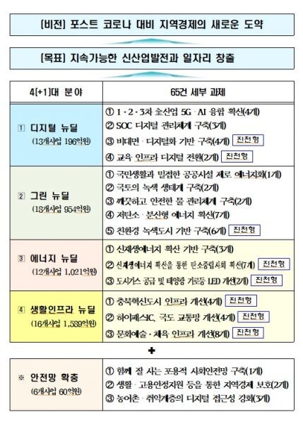 추가 발굴한 사업에는 재해위험지역 재난대응 조기경보시스템 구축ICT기반 농공단지 스마트화 사업 디지털 농업인 교육시스템 구축 하천변 그린뉴딜 사업 스마트 지방상수도 사업 등이 있다.