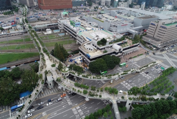 [무한뉴스] 오는 10월 구서울역사 옥상에서 서울로7017로 바로 연결되는 폭6m, 길이 33m의 ‘공중보행로’가 개통된다.
