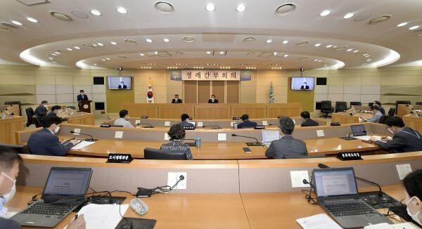이날 강화된 사회적 거리두기를 위해 4급 이상 간부와 사업 보고 부서장들만 참석했으며 나머지 부서장들은 온라인으로 회의에 참여했다.