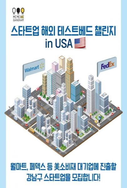 [무한뉴스] ‘기분 좋은 변화, 품격 있는 강남’을 실현 중인 강남구가 월마트·페덱스 등 미국 소비재 기업과 손잡을 기회를 마련하기 위한 해외 테스트베드 사업에 참여할 스타트업을 이달 11일부터 25일까지 모집한다.