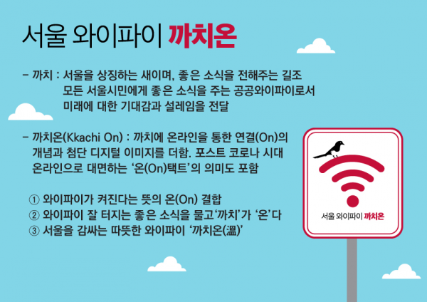 ‘까치온’이란 이름은 서울을 상징하는 새이자 좋은 소식을 전해주는 길조인 ‘까치’와 와이파이가 켜진다는 뜻의 ‘온’이 결합됐다.