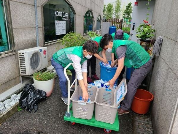 마포구 성산1동주민센터는 마을 주민으로 구성된 새마을지도자협의회 및 부녀회 회원들과 함께 포장용 아이스팩을 모아 재활용하는 사업을 추진 중이다.