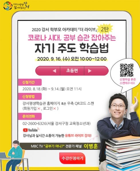 [무한뉴스] 서울 강서구는 코로나19로 원격과 등교 수업을 병행하고 있는 초등학생 자녀의 학습능력 저하를 고민하는 학부모들을 위해 강서 학부모 아카데미 ‘더 라이브 2탄’을 개최한다고 밝혔다.