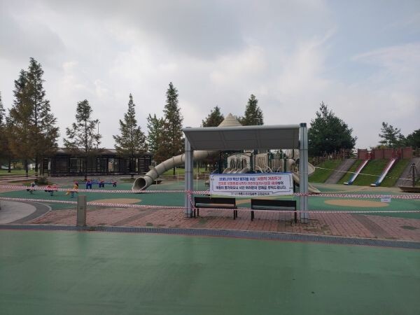 [무한뉴스] 청주시가 주말 동안 문암생태공원에 가족단위의 시민들이 많이 모여들면서 마스크 미착용 등 예방수칙이 지켜지지 않는 점을 고려해 코로나19 확산을 방지하기 위해 사회적 거리두기 2단계 연장기간인 오는 20일까지 어린이놀이시설을 임시 폐쇄한다.