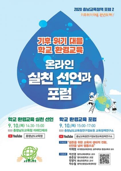 [무한뉴스] 충남교육청은 10일 충청남도교육청연구정보원 영상스튜디오에서 ‘기후위기 대응 학교 환경교육 실천 공동선언과 환경교육 포럼’을 온라인으로 개최한다.