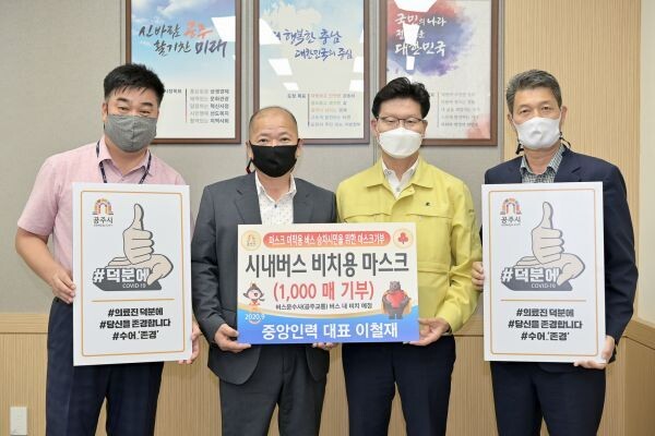 [무한뉴스] 공주시는 지난 10일 중앙인력 이철재 대표가 코로나19 확산 방지에 써달라며 마스크 1000매를 기탁했다고 밝혔다.