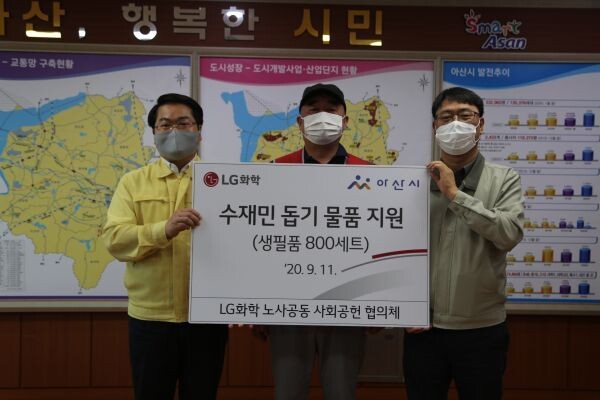 [무한뉴스] ㈜LG화학 대산공장과 LG화학 대산 노동조합이 지난 11일 아산시를 방문해 집중호우로 피해를 입은 주민을 위한 3,200만원 상당 생활용품 800세트를 전달했다.