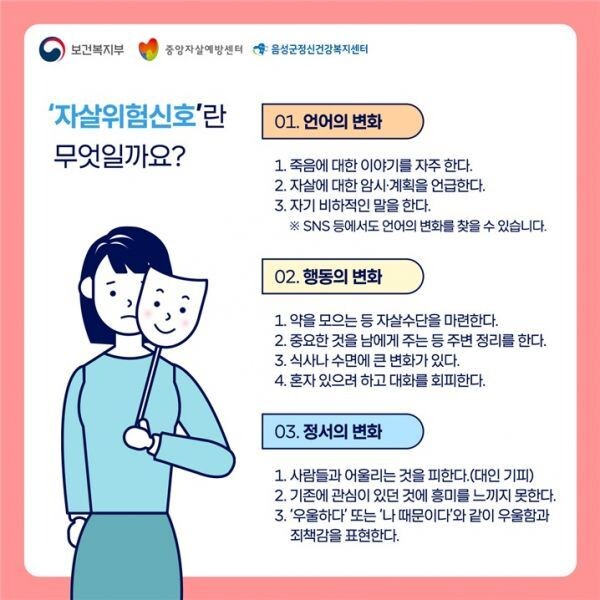 한국은 OECD 가입국 중 자살률 1위이며 그 중 음성군은 충북에서 4위를 차지할 만큼 높은 자살률을 보이고 있다.