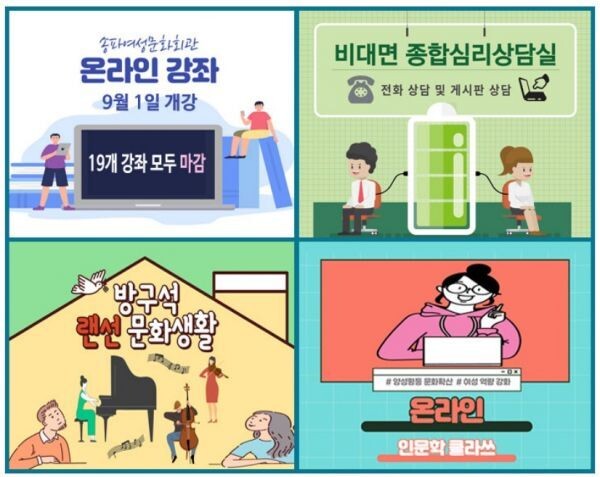박성수 송파구청장은 “코로나로 일상이 멈췄지만 구민의 정서까지 위축되어선 안된다”며 “송파여성문화회관을 통해 비대면 프로그램을 적극 개발하고 심리방역을 강화해 코로나를 이겨내는데 보탬이 되겠다”고 밝혔다.