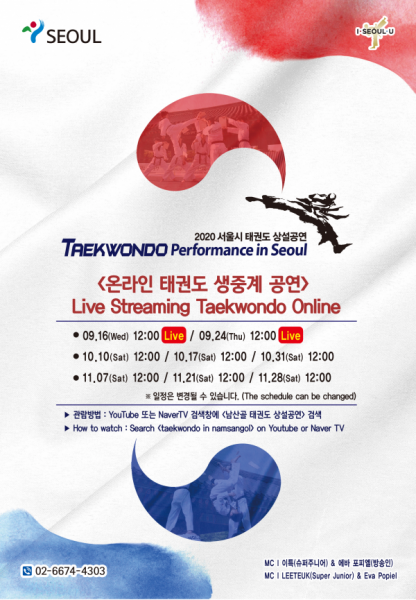 서울시의 태권도 공연은 2007년부터 매년 남산골 한옥마을 상설공연과 찾아가는 거리공연으로 진행되어 서울을 찾는 국내외 관광객들에게 즐거움을 선사해 온 서울시의 대표적인 공연으로서 2020년은 랜선공연으로 추진해 보다 많은 볼거리와 즐거움을 선사할 계획이라고 전했다.