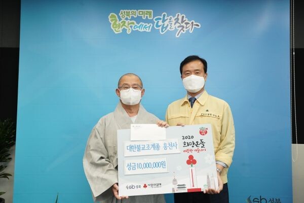 [무한뉴스] 성북구는 지난 9월 9일 대한불교조계종 흥천사가 코로나19로 어려움에 처한 지역주민을 위해 성금 1천만원을 기탁했다고 밝혔다.