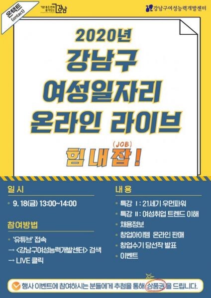 누구나 온라인으로 시청할 수 있으며 자세한 내용은 강남구여성능력개발센터 홈페이지에서 확인할 수 있다.