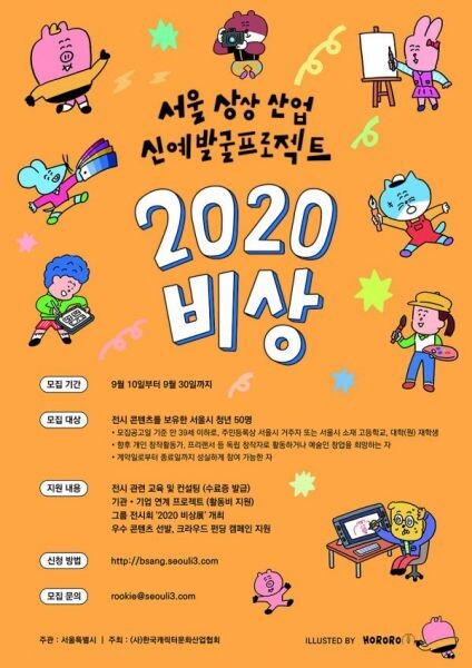 ‘2020 비상’ 은 전시콘텐츠를 보유한 만 39세 이하의 서울시 청년 50명을 대상으로 운영하며 9월 30일까지 홈페이지를 통해서 접수받는다.