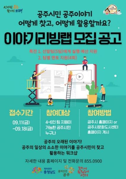 16일 시에 따르면, 이번 사업은 문화도시사업에 대한 시민 참여를 확대하기 위해 마련된 것으로 시민의 평범한 일상과 공주의 역사와 미래 등 공주에 대한 이야기를 시민 스스로 자유롭게 발굴하고 활용하도록 지원하는 사업이다.