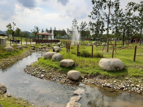 자연친화적 공간 조성을 위해 완만한 경사를 활용한 폭포와 연못을 만들고 아이들이 맘껏 뛰어놀 수 있는 넓은 잔디 관장을 조성해 도심 속 아스팔트에 익숙해져 있는 아이들에게 흙과 풀, 나무를 가까이 할 수 있고 빨간 고추잠자리와 나무 뒷면에 숨어있는 청개구리를 볼 수 있는 즐겁고 안전한 장소로 인기가 높다.