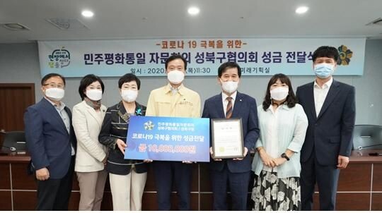 [무한뉴스] 성북구는 9월 17일 민주평화통일자문회의 성북구협의회가 코로나-19를 위한 성금 천만원을 기탁했다고 밝혔다.
