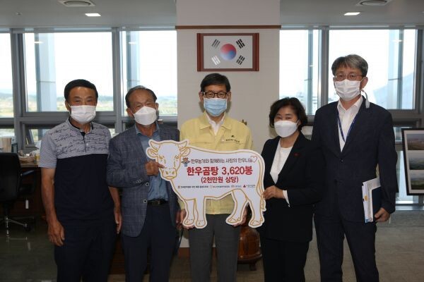 전국한우협회 충남도지회는 집중호우와 태풍으로 피해를 본 이재민 등 도내 어려운 가정을 위해 한우곰탕 3620봉지를 기부했다.