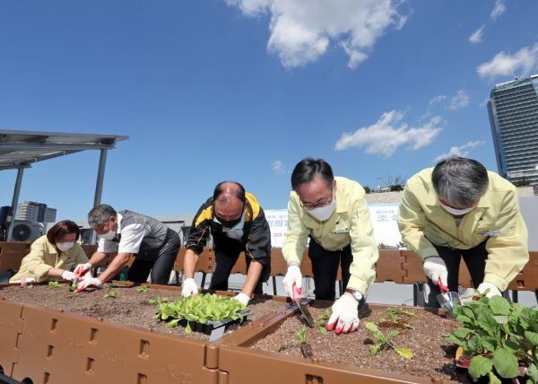 유성훈 구청장은 이날 오전 11시 보린희망주택 옥상에서 입주 어르신들과 함께 모종심기를 하며 코로나19로 외부활동이 감소하면서 힘들어하는 어르신들을 위로했다.