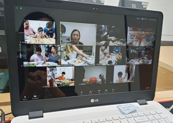 참가자들은 집에서 온라인 화상대화 형식으로 진행하는 한국조리직업전문학교 강사의 설명을 들으며 명절 음식을 만들어보는 시간을 갖는다.