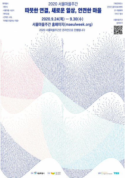 [무한뉴스] 서울시와 자치구는 한 해 동안의 마을공동체 활동 성과와 앞으로 마을공동체가 나아가야 할 방향을 서울 시민과 함께 공유하고자 오는 24일부터 30일까지 ‘2020 서울마을주간’을 온라인으로 개최한다고 밝혔다.