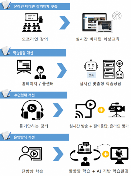 아울러 코로나19 대응 및 포스트 코로나 시대에 맞는 온라인·비대면 학습 환경을 조성하기 위해 2021년까지 평생학습포털시스템의 전면 개편을 추진한다.