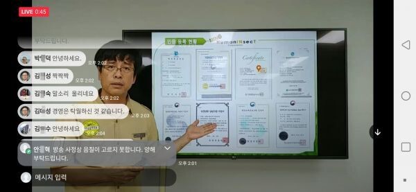 지난 15일 실시한 교육은 농업인대학 산업곤충학과 교육생 13명을 대상으로 김용평 강사의‘산업곤충 창업성공사례’를 주제로 네이버 밴드를 활용한 온라인교육이 진행됐다.