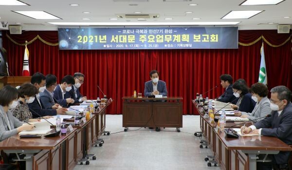 [무한뉴스] 서대문구는 내년도인 2021년 구정운영방향을 지역경기 집중회복, 민선 7기 핵심 사업의 성공적 완수, 지속가능한 미래를 대비하는 선도적 지방정부로 설정했다고 22일 밝혔다.