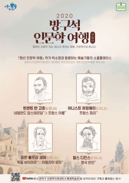 강의는 9월 15일 부터 2주마다 총 6회 과정으로 업로드 될 예정이며 유튜브 검색창에 “관악구 인문학지원센터”를 검색 후 구독하면 해당 강의를 볼 수 있다.