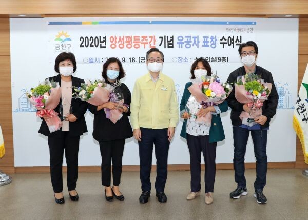 이번 시상식은 코로나19 여파로 양성평등주간 기념식이 취소됨에 따라 수상자만이 참여한 가운데 금천구청 소회의실에서 간소하게 진행됐다.