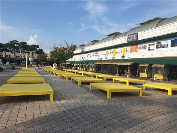 [무한뉴스] 공주시는 산성시장 문화공원에 상권을 방문하는 고객들이 거리 두기를 지키면서 편안하게 쉴 수 있는 여행자 평상을 설치했다고 22일 밝혔다.