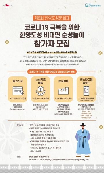 한편 10월 9일에는 ‘도성을 하루에 완주하면 소원이 이루어진다’는 이야기를 살린 ‘코로나19 극복 기원 잇기 순성’이 진행된다.