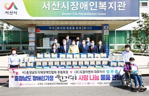 [무한뉴스] 서산시가 22일 서산시 장애인복지관에서 추석 맞이 장애인가구 후원물품 전달식을 개최했다.