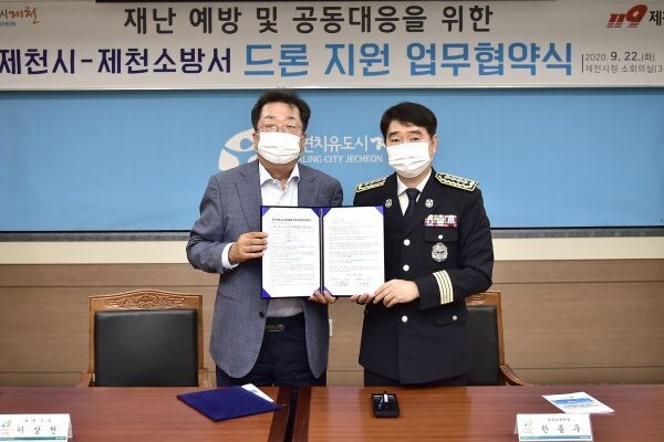 [무한뉴스] 제천시는 지난 22일 시청 소회의실에서 제천소방서와 재난예방 및 공동대응을 위한 드론 지원 업무협약을 체결했다.