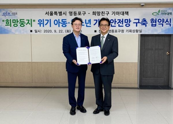 [무한뉴스] 영등포구가 지난 22일 사단법인 희망친구 기아대책과 지자체 최초로 위기 아동·청소년 가정 긴급지원사업 ‘희망둥지’ 업무 협약을 체결했다.