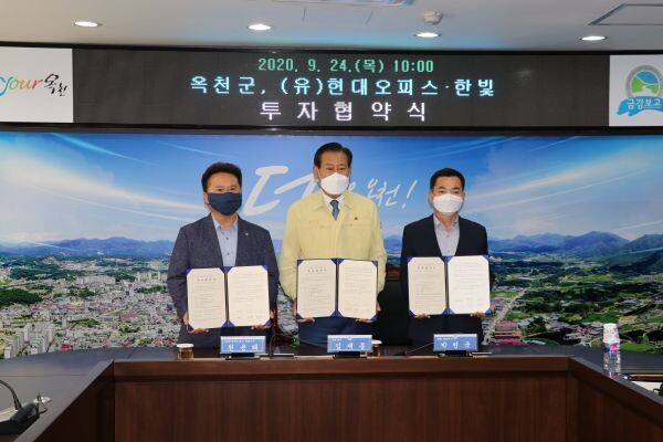 [무한뉴스] 옥천군은 옥천테크노밸리에 사무기기 제조기업인 현대오피스, 자동차 부품 제조업체인 한빛과 543억원 규모의 신설 투자를 유치한다.