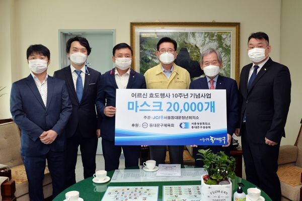 이 날 서울동대문청년회의소는 코로나19 감염 예방을 위한 마스크 2만 개를 준비해 전달했다.