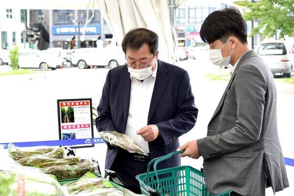 [무한뉴스] 이상천 제천시장은 지난 25일 추석 명절을 앞두고 제천로컬푸드 직거래장터를 찾아 농산물을 구입하며 장바구니 물가를 몸소 체험하고 행사를 운영 중인 제천로컬푸드협동조합 김현주 조합장과 농가들을 격려했다.