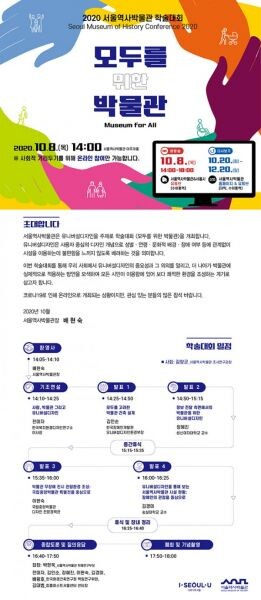 [무한뉴스] 서울역사박물관은 오는 10월 8일 유니버설디자인을 주제로 2020년 서울역사박물관 학술대회 ‘모두를 위한 박물관’을 개최한다.