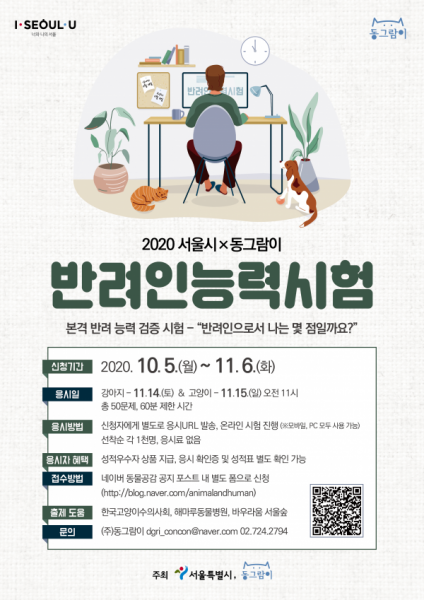 반려인 능력시험은 서울시와 네이버 ‘동물공감’판 운영자 ㈜동그람이가 함께 주관한 행사로 반려인, 또는 예비 반려인이 자신의 반려동물에 대해 얼마나 많이 알고 있는지 확인해보고 공부하는 기회를 만들고자 진행한다.